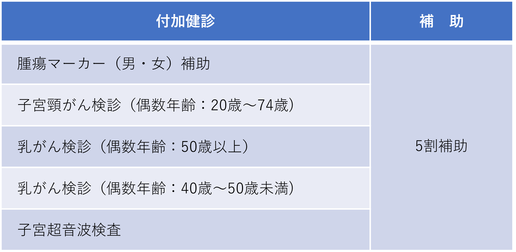 定期健康診断受診時受診できる、以下付加健診について会社から補助を提供。